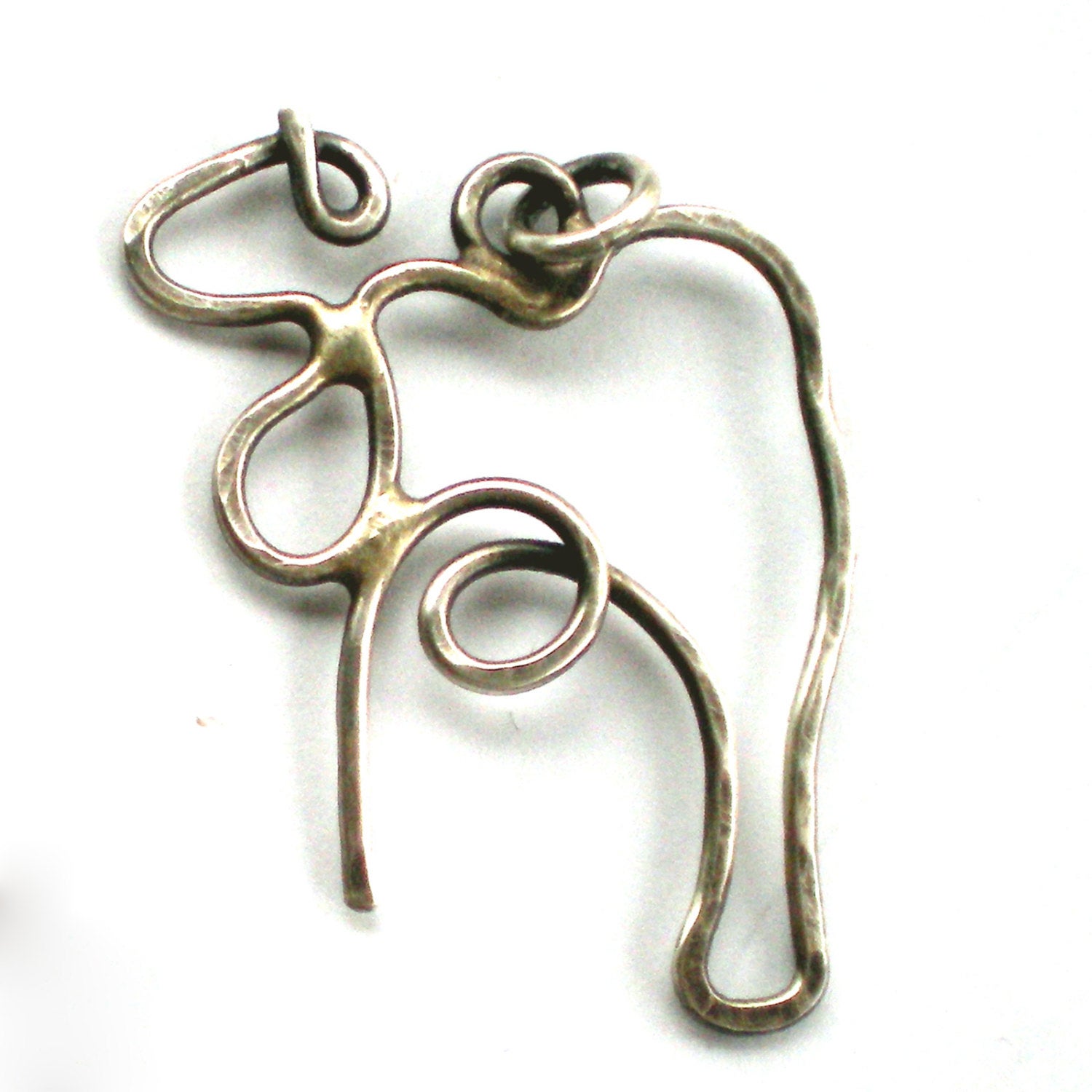 Camel shape is one continuous piece of 16 gauge sterling silver wire, hammered, soldered closed in a few key spots, & patinaed lightly. Pendant measures approx. 1 1/2 inch long x 1 inch wide, and comes with black leather cord necklace.