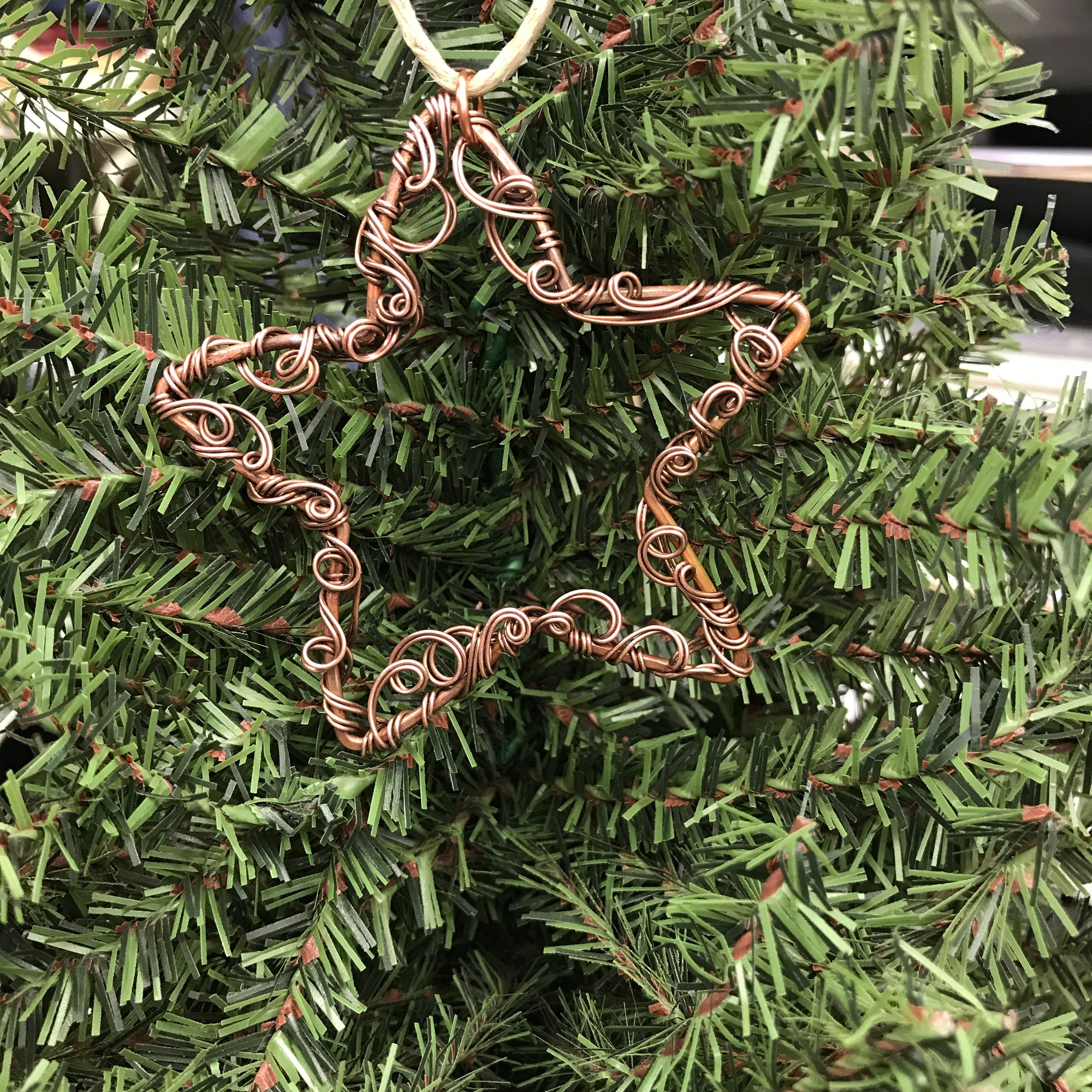 Copper star ornament is just waiting to be hung on your holiday tree.....though it looks equally lovely hanging in a kitchen window or even from your rearview mirror.