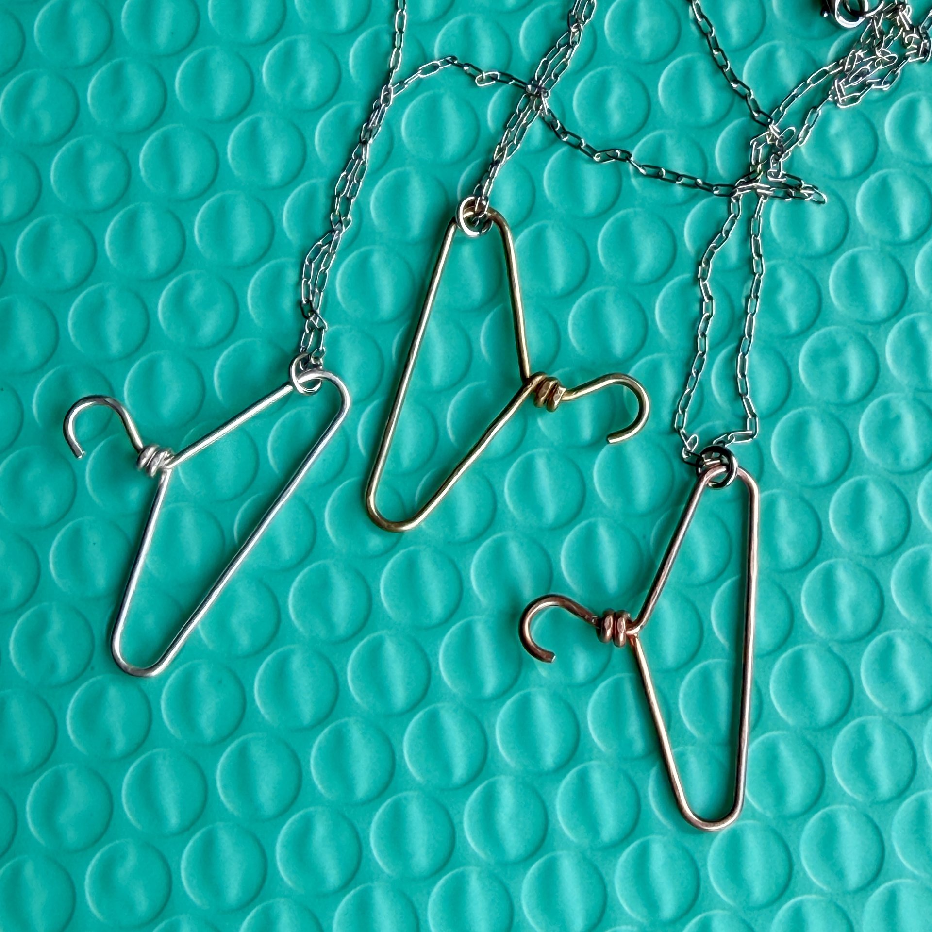 Miniature Coat Hanger Necklace, Choice of Sterling, Copper, Brass